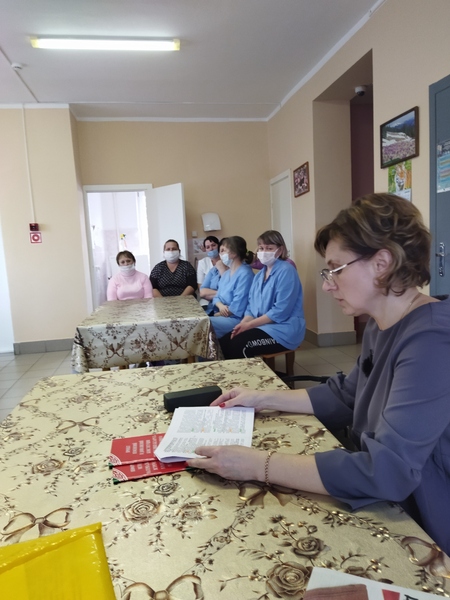 10 февраля 2022 года Заместитель председателя Брагинского районного исполнительного комитета Михаленко И.А. провела диалоговую площадку по обсуждению проекта изменений и дополнений Конституции Республики Беларусь с работниками и жильцами отделения круглосуточного пребывания для граждан пожилого возраста и инвалидов учреждения «Брагинский территориальный центр социального обслуживания населения».
