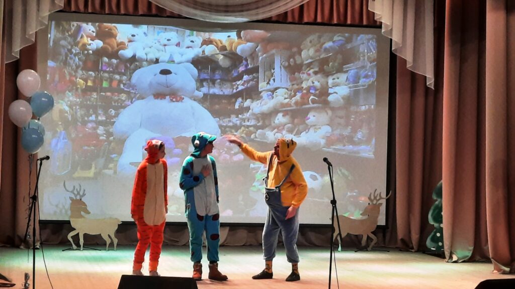 С большим вниманием и интересом дети с ограниченными возможностями здоровья следили за приключениями зверей, которые отправились в сказочный лес на поиски Деда Мороза. Никакие козни коварной Гарпии, отправившей Деда Мороза на Мальдивы, не смогли помешать им встретить весело самый долгожданный праздник Новый. И, конечно же, детей с Новым годом поздравили Дед Мороз и Снегурочка. Каждый ребенок получил сладкий новогодний подарок. Праздник был полон солнечных улыбок, детского смеха и отличного настроения. Было приятно видеть сияющие глаза детей. Мы надеемся, что теплые воспоминания об этом празднике останутся у всех присутствующих надолго.