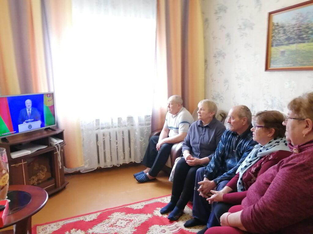 Клуб «В кругу друзей» учреждения «Брагинский ТЦСОН» смотрят и слушают послание Президента Республики Беларусь к белорусскому народу и парламенту.